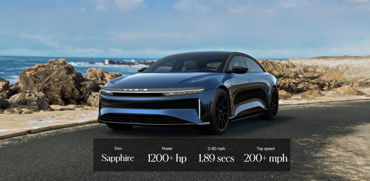 작년 2022년 11월 15일 루시드 모터스(Lucid Motors)는 루시드 에어 사파이어라는 최상위 트림 모델을 공개하면서 괴물 같은 성능을 세상에 알렸습니다. 테슬라의 최상위 플래그쉽 모델 S 플레이드보다 앞선 수치로 세상을 놀라게 했습니다.