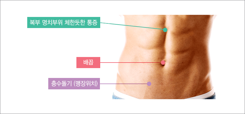 - 배꼽 주변 통증이 있는지 확인 (기본 증상)