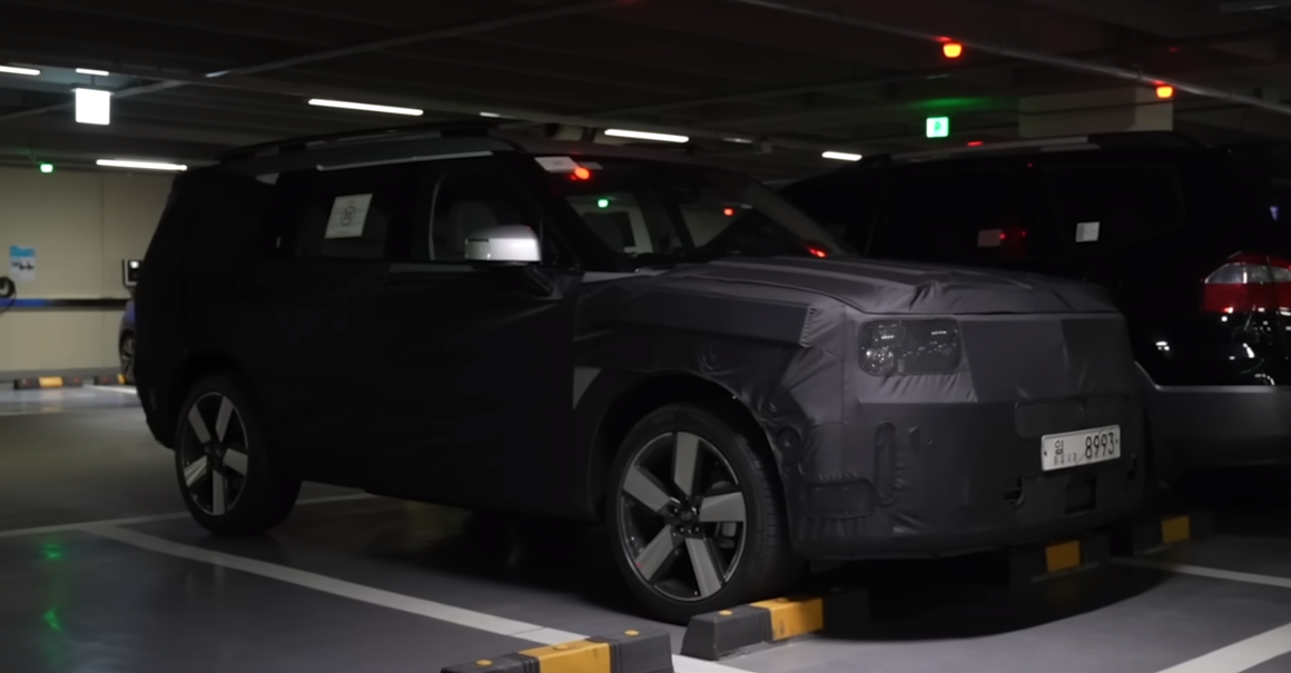 < 왼쪽 : 랜드로버 디펜더, 가운데 : 싼타페풀체인지(예상도), 오른쪽 : 모하비 >