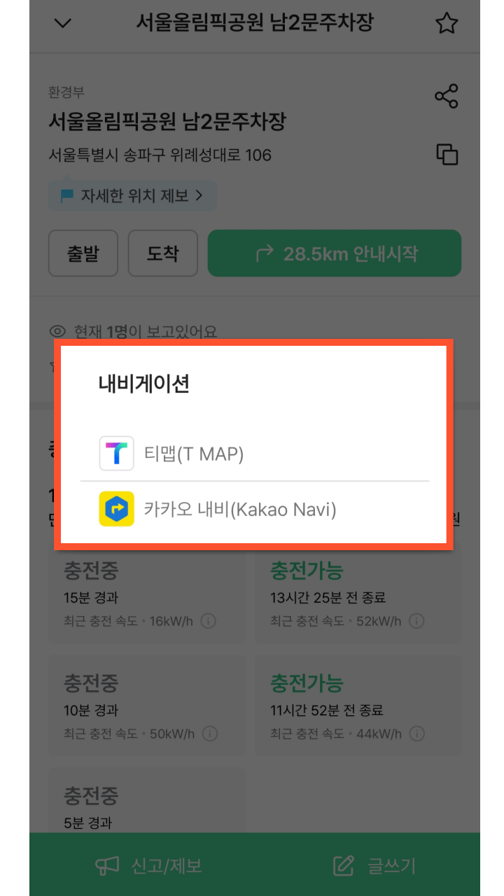사용하고 있는 충전기의 경우 얼마나 충전했는지 실시간으로 경과 상태를 알려주기 때문에, 시간계산을 미리 해볼 수 도 있습니다. 또한 내비게이션 어플로 바로 연결해 주는 기능도 있어서 굉장히 편리합니다.