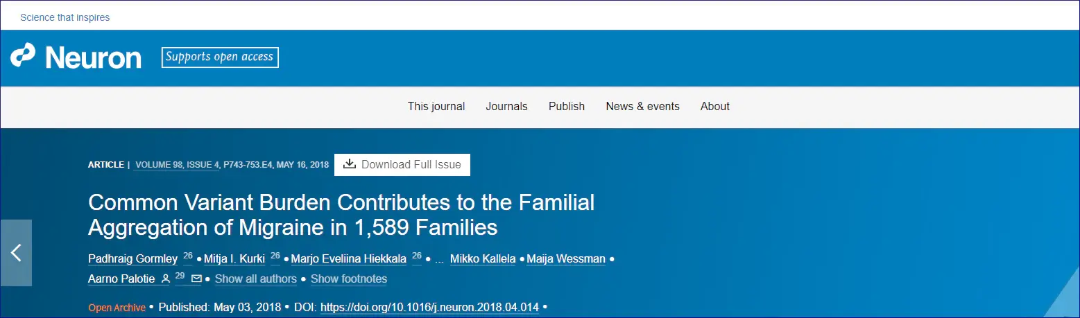 연구팀은 편두통 유전이 이상한 형태를 띤다고 언급했는데요. 보통은 "흔하지 않지만 높은 유전성"과 "흔하지만 낮은 유전성" 두 가지 유형이 구분이 되기 마련인데, 편두통의 가족력 경우는 두 가지 모두가 나타난다고 합니다.