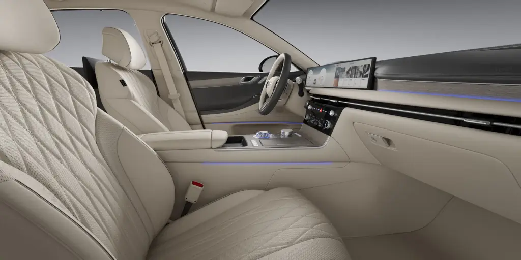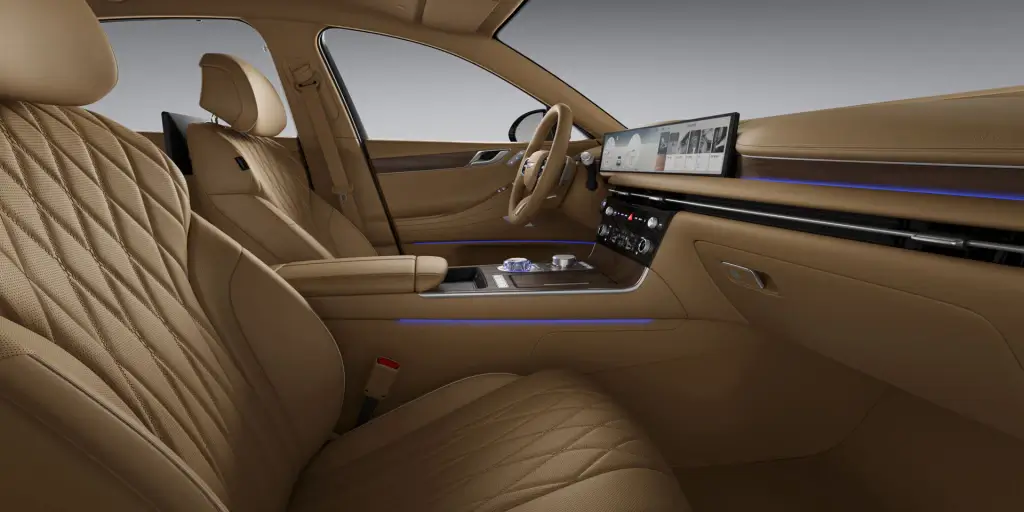 2024 제네시스 G80 내장 칼라는 기본적으로 2가지 톤을 제공하고 있습니다. 그리고 "시그니처 디자인 셀렉션 I"과 "시그니처 디자인 셀렉션 II"를 유료 옵션으로 제공하여, 보다 많은 내장 칼라를 선택할 수 있게 만들어 놨습니다.